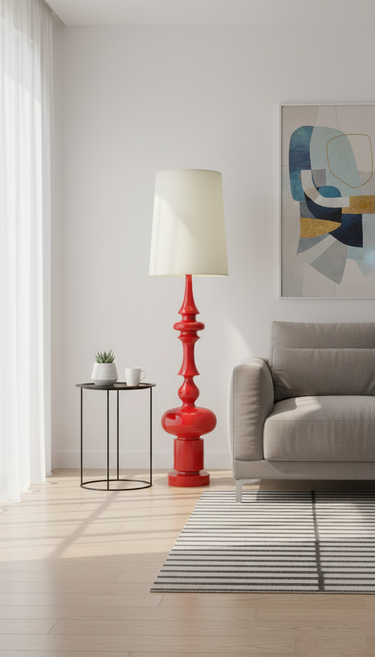 Bu özel tasarım, sadece bir aydınlatma aracı değil; evinizin karakterini yansıtan bir dekorasyon ikonudur. Kırmızının enerjisi, klasik torna detaylarıyla birleşerek hem retro hem de modern mekanlarda kusursuz bir odak noktası oluşturur.