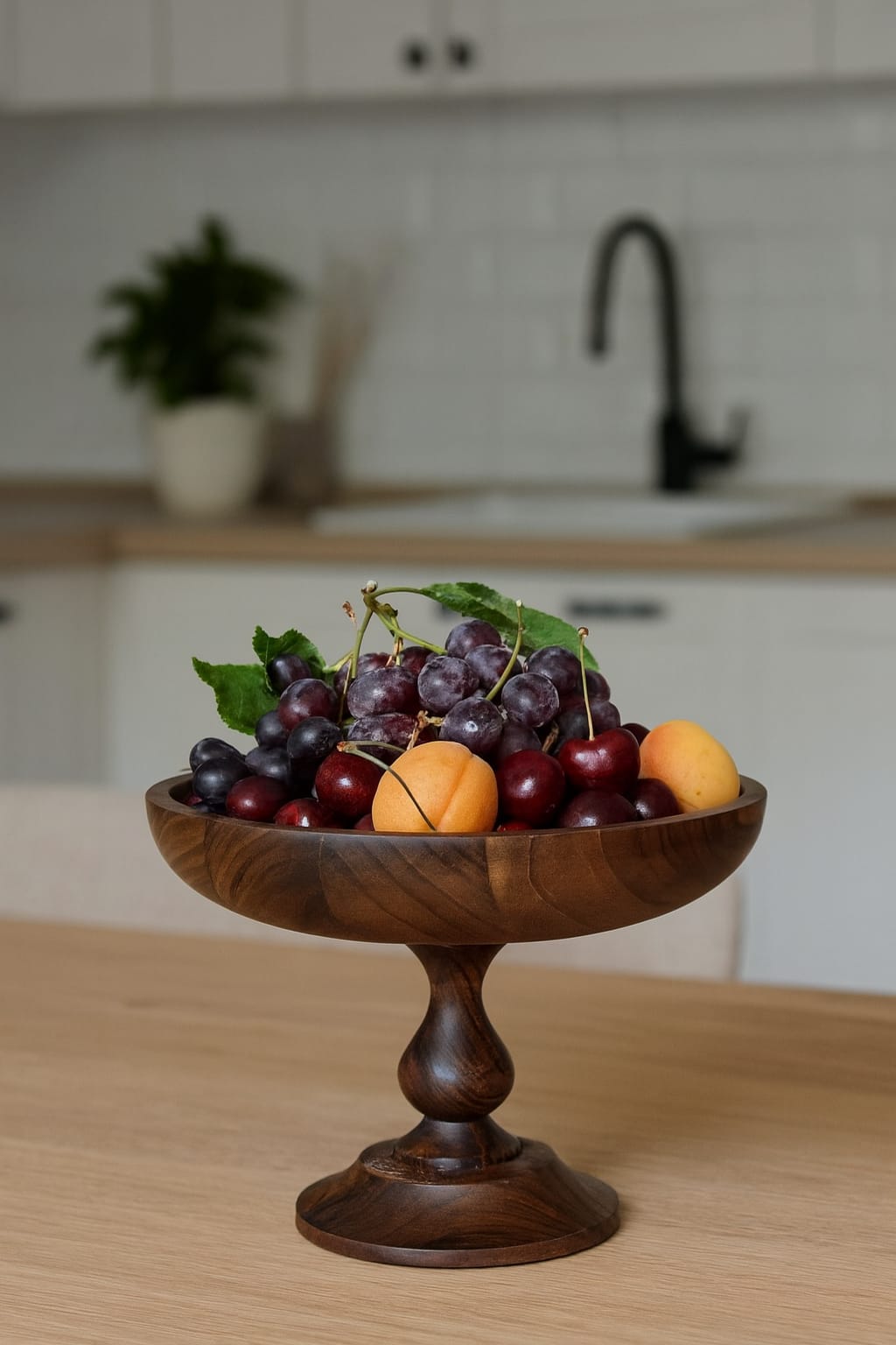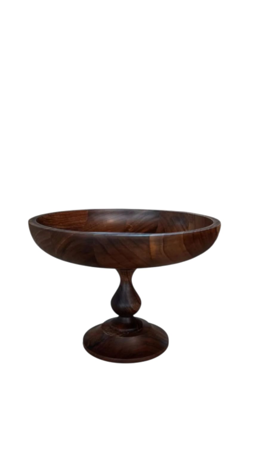 Ceviz Ağacından El Yapımı Ayaklı Meyvelik ve Sunum Tabağı