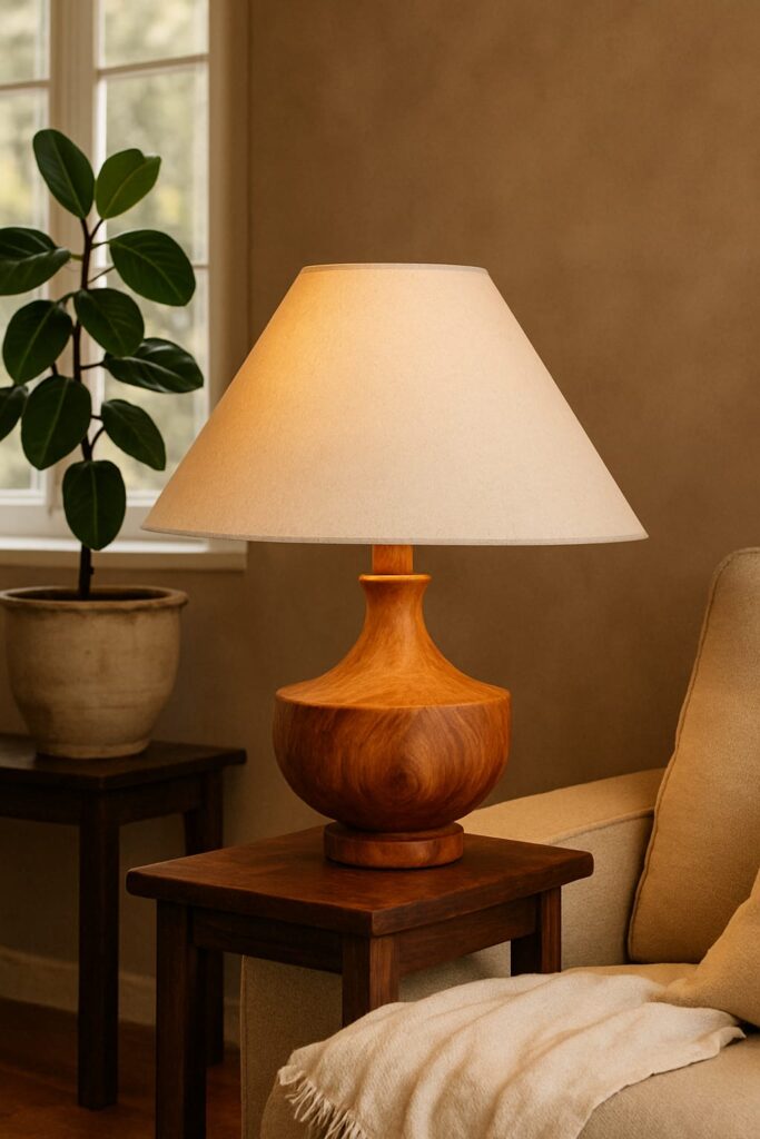El Yapımı Gürgen Ahşap Dekoratif Masa Abajuru – 60 cm