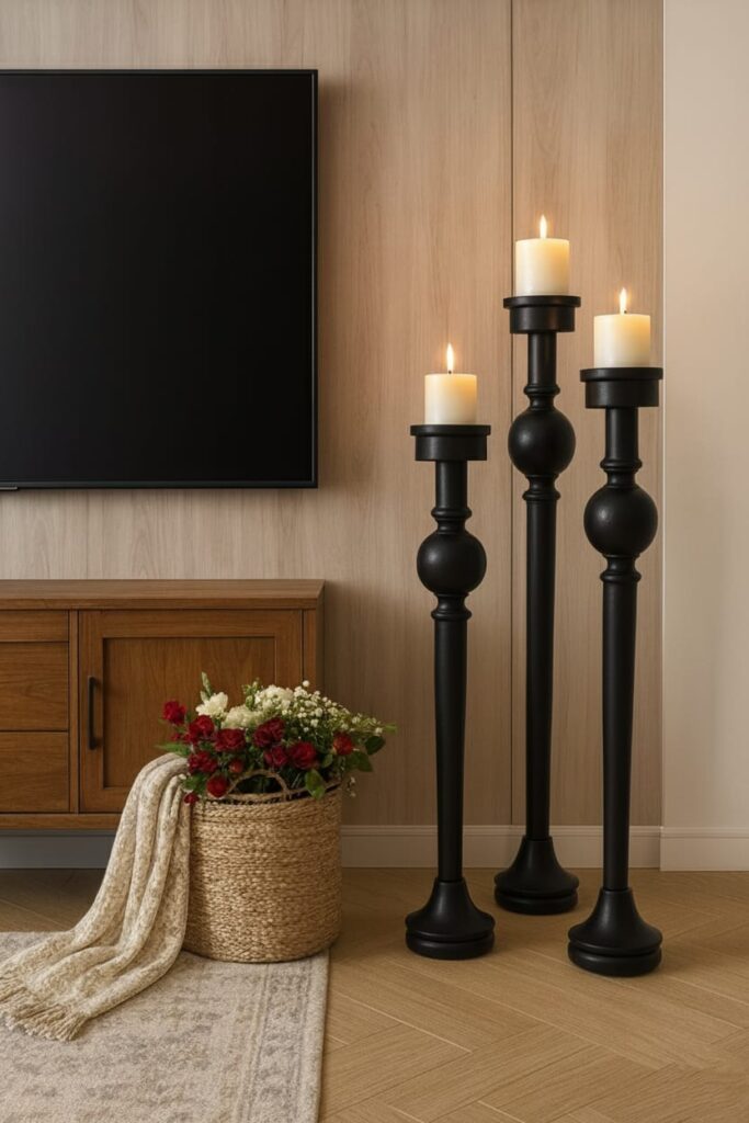 Bu seti yemek masalarınızda modern bir orta parça olarak kullanabilir veya salon dresuarlarınızın üzerinde lüks bir odak noktası oluşturabilirsiniz. 10 cm’lik geniş sahanlık çapı sayesinde büyük blok mumlarla kombinleyerek evinizde hem kontrastı güçlü hem de huzurlu bir aydınlatma köşesi yaratabilirsiniz.
