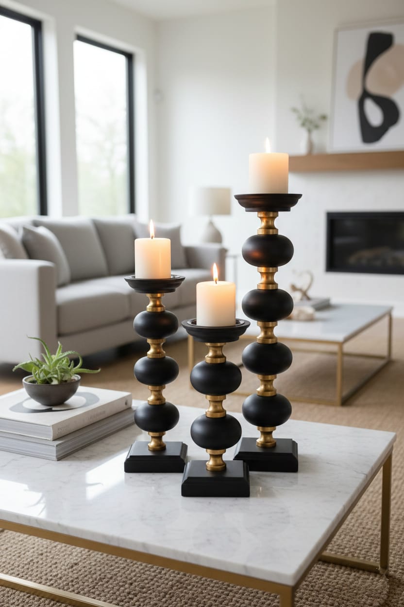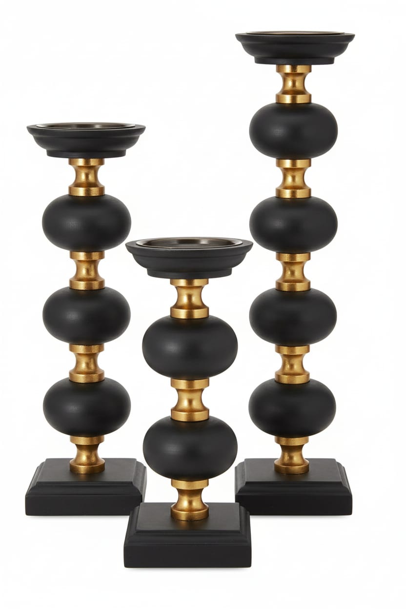 Gürgen Ağacından Noir Brass Siyah Şamdan Seti – 3’lü
